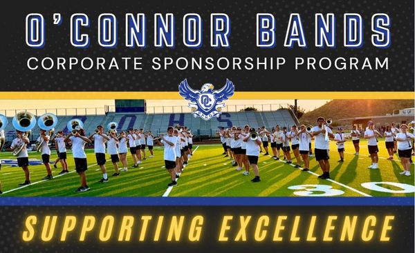 The O'Connor Bands program offers students a variety of quality music and performance opportunities. Programs include the award-winning Eagle Pride Marching Band, Winter Guard and Indoor Percussion ensembles, and multiple concert ensembles. These programs challenge students to excel in musical performance, marching and color guard arts, leadership, teamwork, and more. Your corporate sponsorship would help O'Connor Bands continue to grow and thrive. Corporate sponsorships help to pay for instruments, instrument repairs, scholarships, music, and so much more. Contact fundraising@eagleprideband.org to learn more.